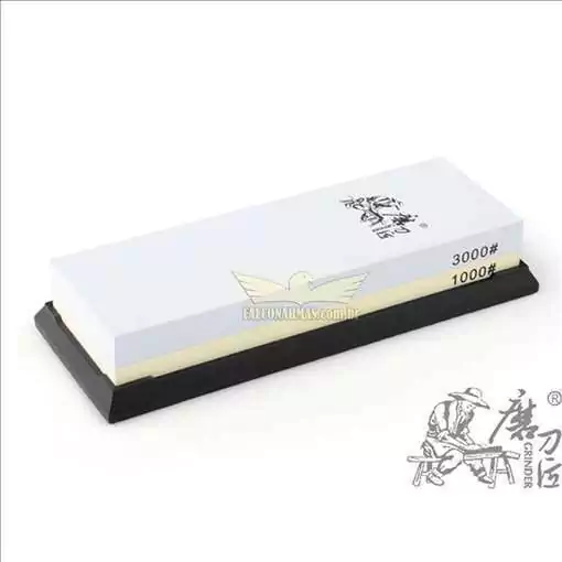 Afiador de alto grau que garante resultados de afiação eficazes. Contém dupla face de pedra(1000 moagem grossa e 3000 moagem fina) o qual se mergulha na água antes de começar a amolar. Equipado com gel de sílica base antiderrapante para garantir a nitidez de segurança.