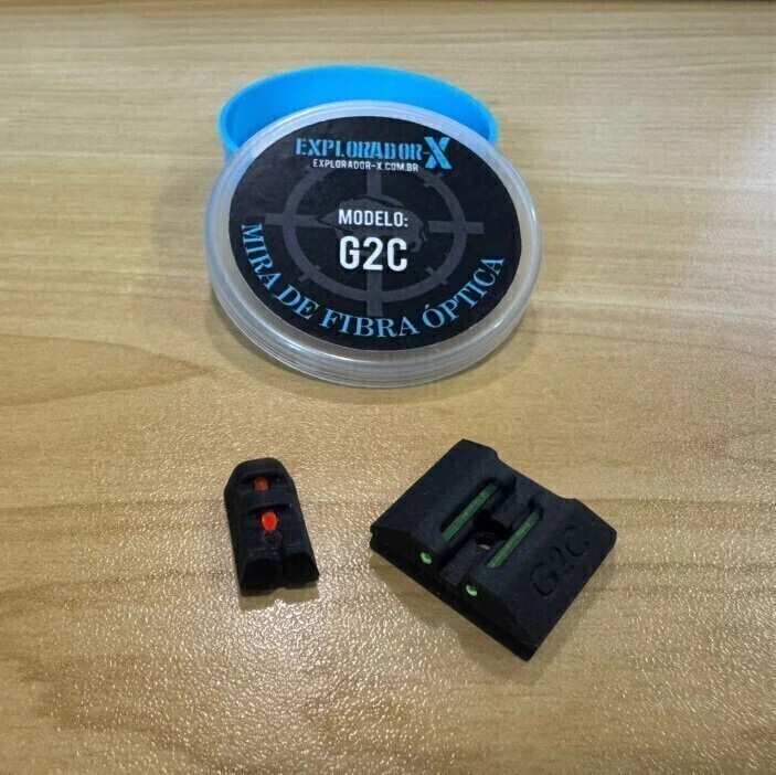 Conjunto de alça e massa de mira fabricado em polímero resistente, com pinos de fibra óptica de alto brilho para visada rápida e precisa. Projeto compacto, leve e de fácil instalação utilizando os pontos de fixação originais da pistola Taurus G2C. Ideal para quem busca melhoria na aquisição do alvo sem comprometer o perfil da arma.