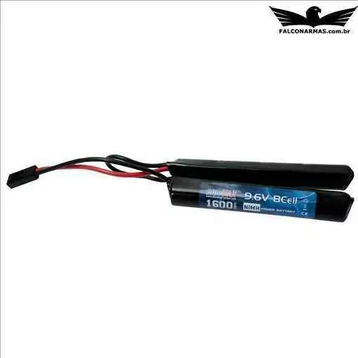 Bateria para airsoft BlueMax modelo NiMH. Bateria com voltagem na medida certa para você jogar por um longo tempo.