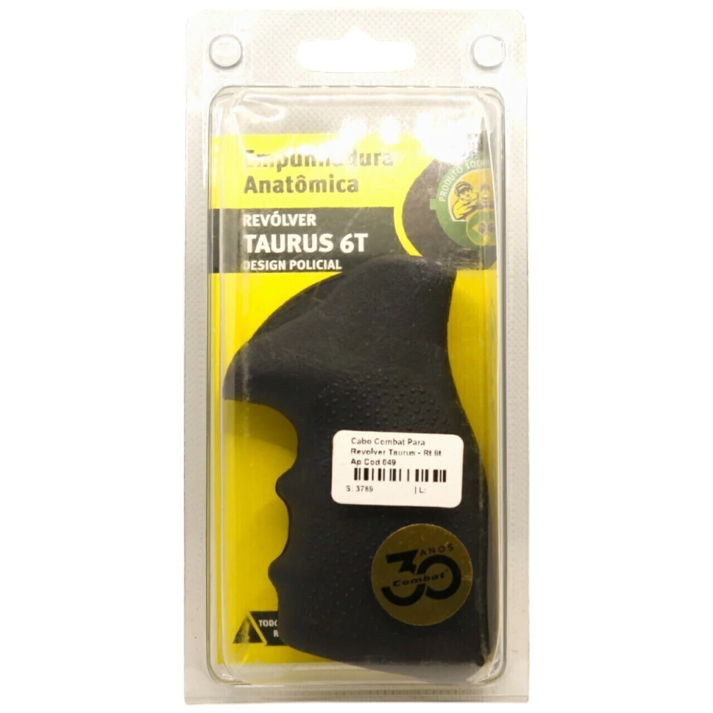 Cabo de Borracha Combat Policial – Preto – Compatível com Revólveres Taurus 6 Tiros e Modelos Similares | Pegada Ergonômica, Absorção de Recuo e Rebaixo para Jet Loader