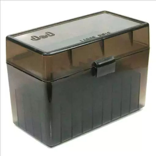 Caixa de munição portátil, super vedada. Para transporte de munições de rifle calibre .30-06 / .458 Winchester e similares. Caixa para 50 munições. Fabricada em polímero de alta densidade.