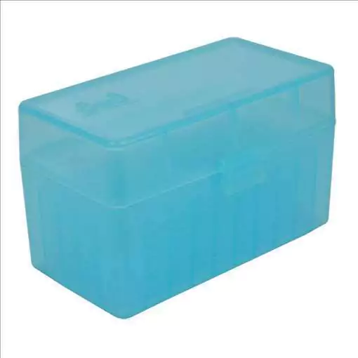 Caixa de munição portátil, super vedada. Para transporte de munições de rifle calibre .762 (308win), .22-250 e similares. Caixa para 50 munições. Fabricada em polímero de alta densidade.