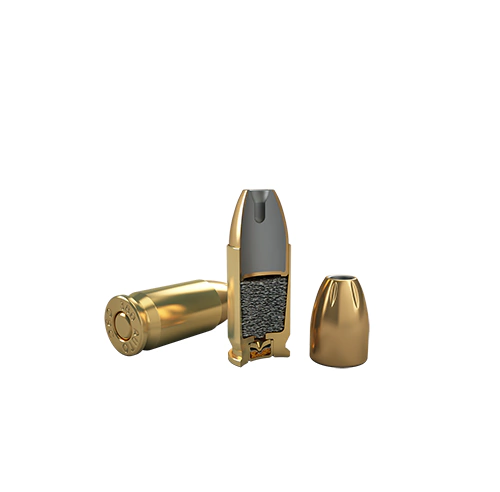 Projétil expansivo de boa penetração. A versão +P (mais pressão) é mais potente que a convencional
