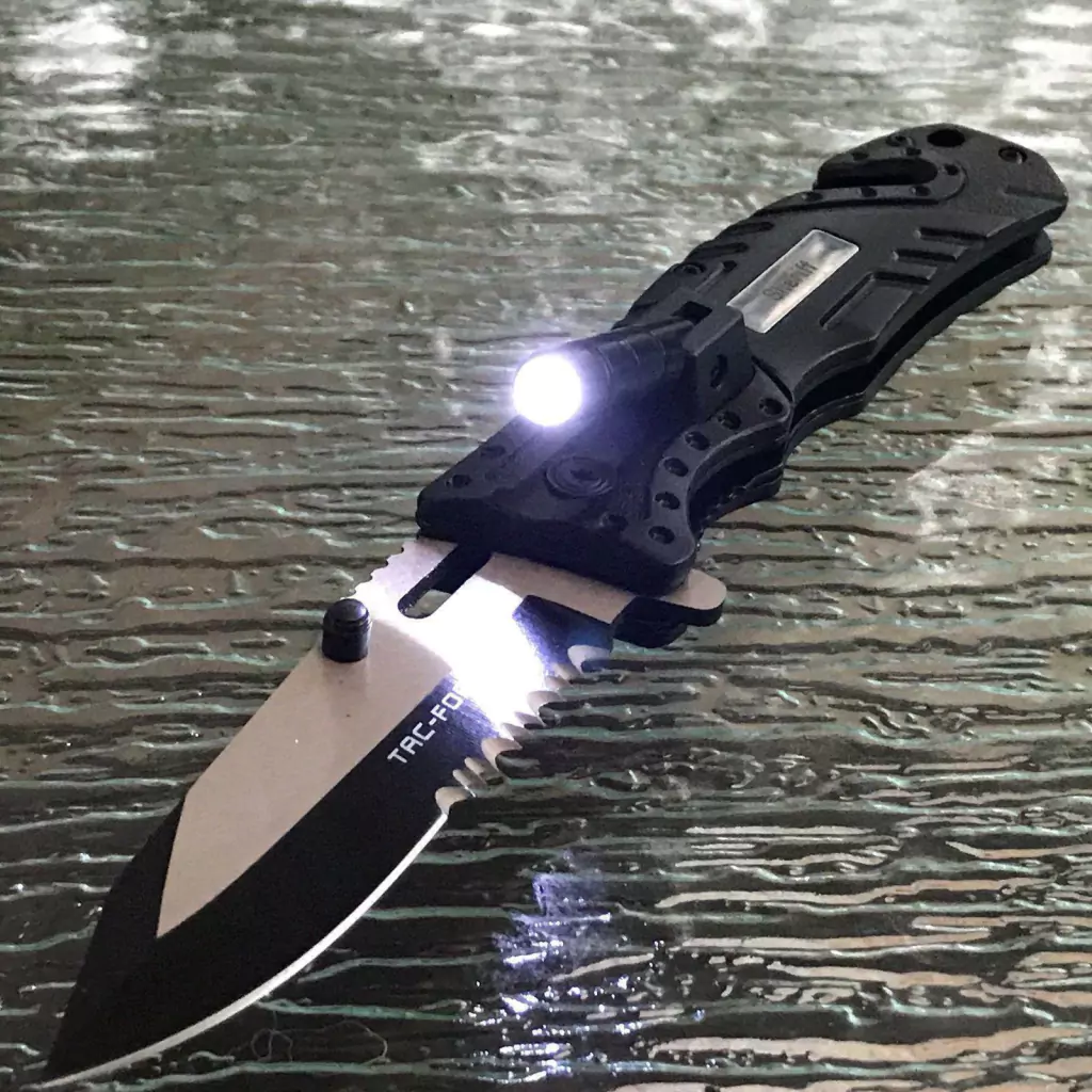 Este Canivete foi projetado ser a seleção ideal para garantir que você tenha uma ferramenta de corte confiável, a faca tática de resgate do Corpo de Bombeiros Tac-Force com quebra-vidros, lanterna e cortador de cinto de segurança é uma faca surpreendente que não o decepcionará quando for necessário.