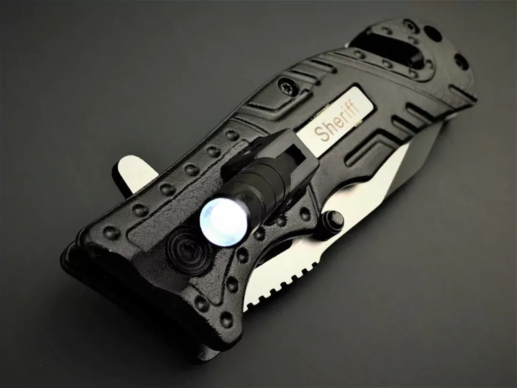 Canivete Manual Tac-force Sheriff - TF-835 C/Lanterna e Quebra Vidros e Cortador de Cinto
