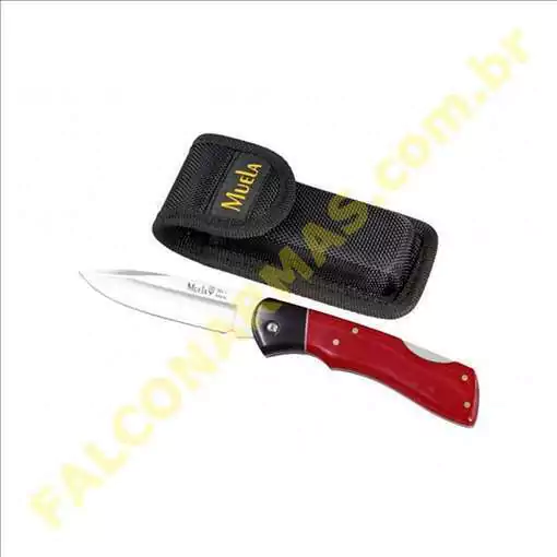 Canivete esportivo Muela, modelo VX - 8R. Canivete com lamina em aço 440, estilo clásico, com trava no cabo. Cabo com talas em Micarta vermelha e detalhe em Cocobola junto a guarda , conferindo um aspecto elegante e diferenciado. Acompanha bainha em cordura preta.