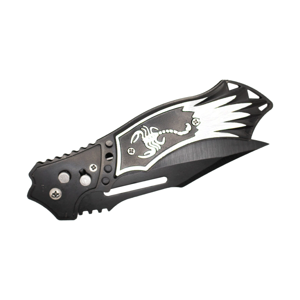 O Canivete Tático Scorpion Black é a escolha ideal para quem busca uma ferramenta de alta performance com um design imponente e funcional. Perfeito para uso tático, atividades ao ar livre ou como acessório de defesa pessoal, este canivete se destaca pela sua versatilidade.