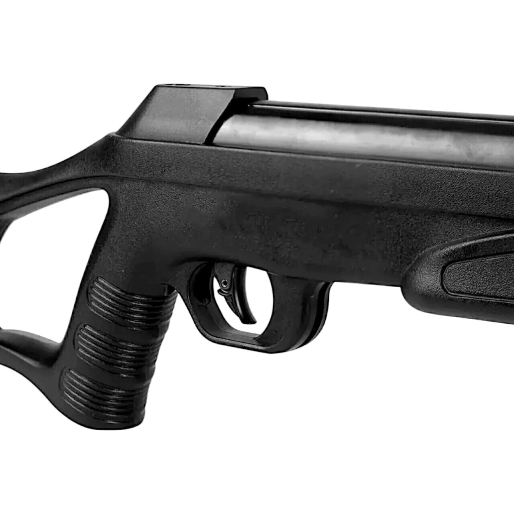 Com velocidade de até 275 m/s (900 FPS) e energia de 38 Joules, está entre as mais potentes da categoria. Seu gatilho ajustável em dois estágios, aliado ao muzzle break ergonômico, permite disparos mais suaves e controlados.