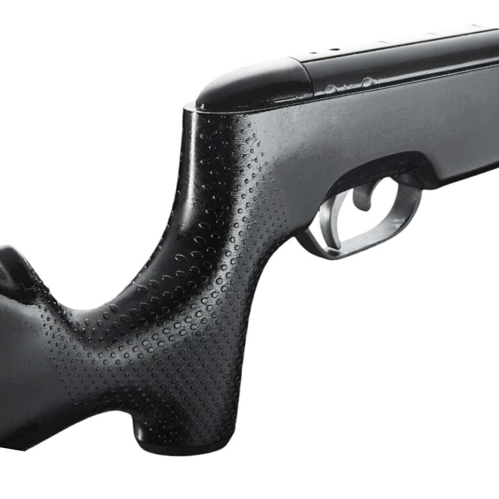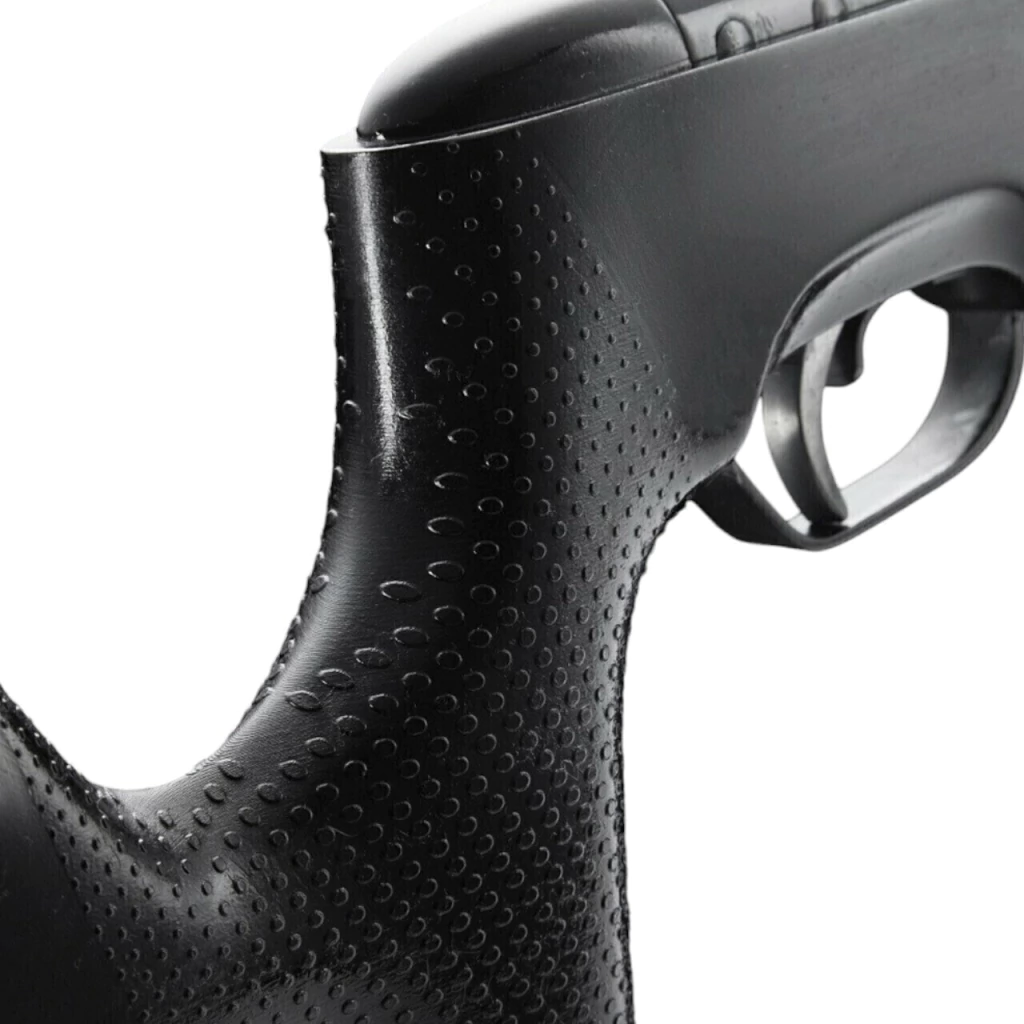 Ideal para disparos de média distância, alcança até 230 m/s (754 FPS) com potência de 17 joules. Sua coronha ambidestra tipo Montecarlo, feita em polímero de alta densidade, proporciona conforto, ergonomia e controle nos tiros.
