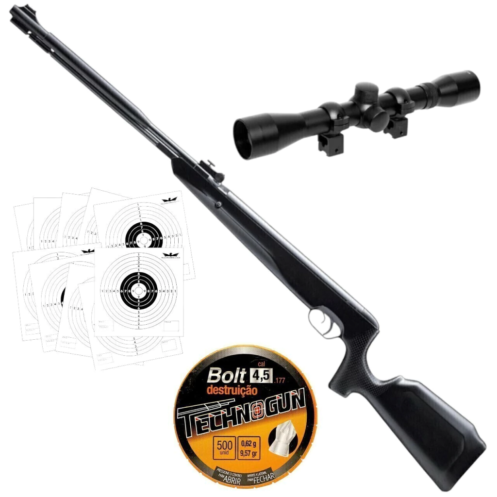 Ideal para disparos de média distância, alcança até 230 m/s (754 FPS) com potência de 17 joules. Sua coronha ambidestra tipo Montecarlo, feita em polímero de alta densidade, proporciona conforto, ergonomia e controle nos tiros.