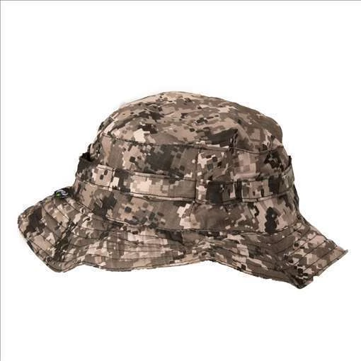 Chapéu confeccionado em tecido rip stop com ajuste no queixo. Possuindo uma proteção para pescoço em tactel, destacável por velcro.