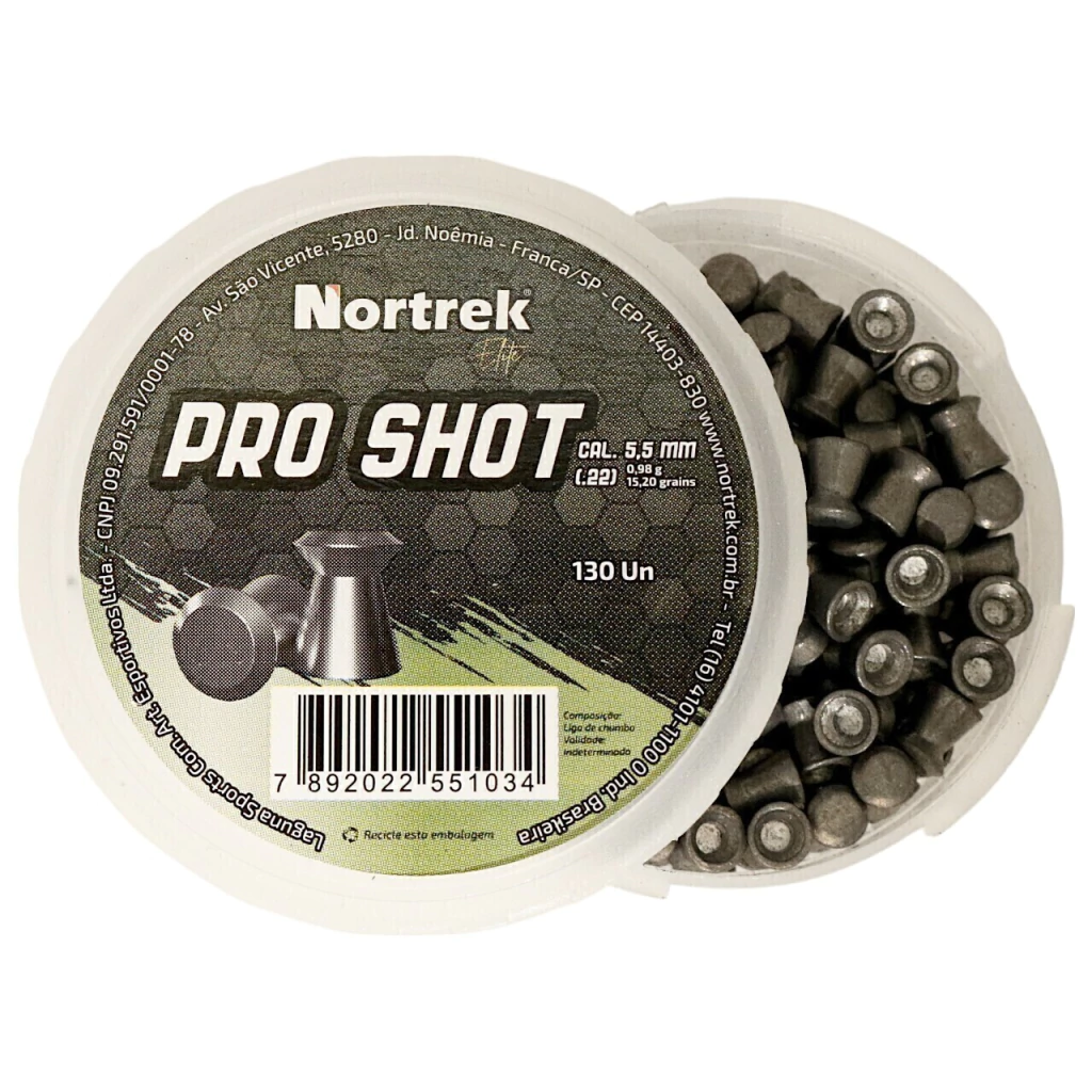 O Chumbinho Nortrek Pro Shot 5,5 mm foi desenvolvido para oferecer alto impacto, precisão e desempenho consistente. Seu formato com cabeça chata (flat-head) garante excelente transferência de energia no disparo, sendo ideal tanto para treinos em alvos de papel quanto para controle de pequenos animais.