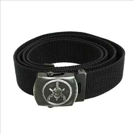 Cinto administrativo em fita preta de 34mm de material 100% polipropileno. Fivela de metal Caveira BOPE.