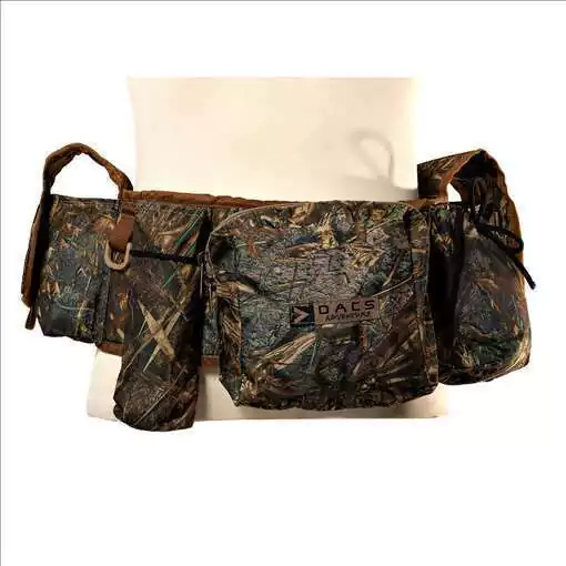Cinto para pesca confeccionado em nylon 600, tornando-o bastante resistente. Possui cinco bolsos, no qual podem ser distribuídos diversos equipamentos conforme sua necessidade.