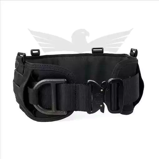 Cinto tático com sistema MOLLE para fixação de acessórios compatíveis com sistema molle. Produzido em nylon cordura na cor PRETO, contém fecho em metal de abertura rápida