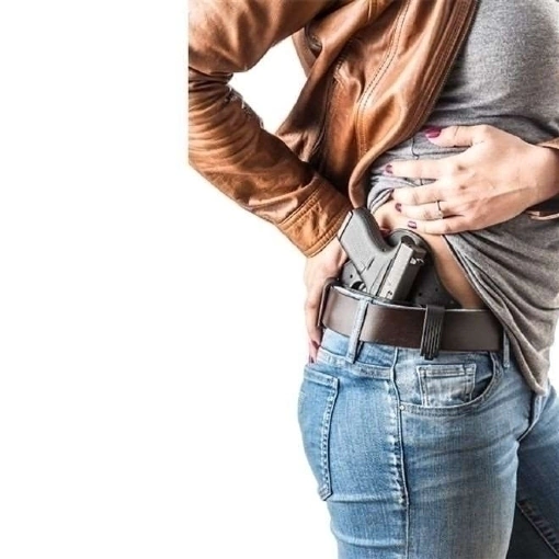 O coldre é projetado para manter um perfil baixo, simulando o caminho natural para portar uma arma dentro da faixa da cintura.
