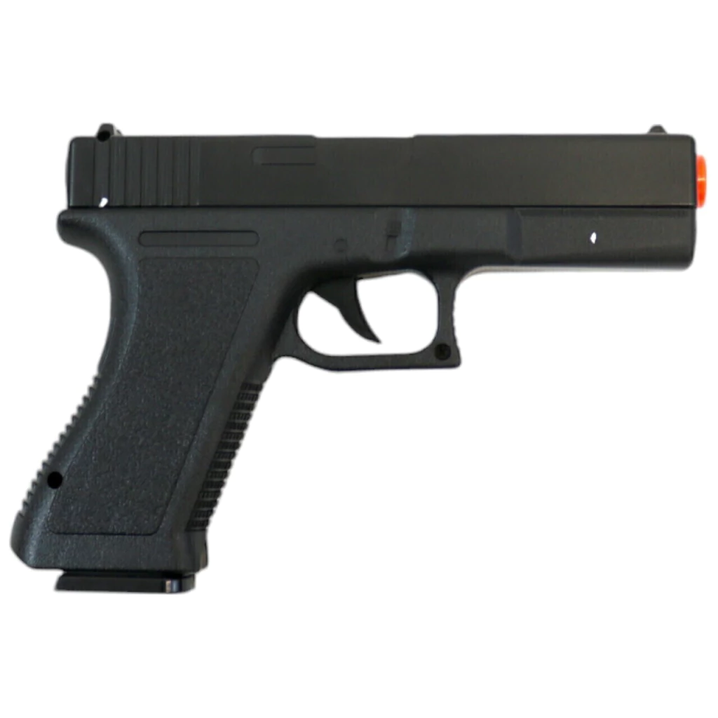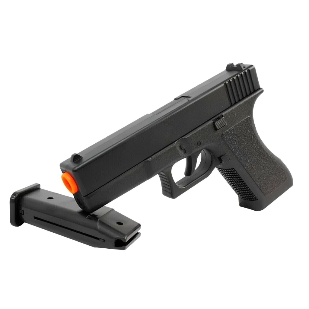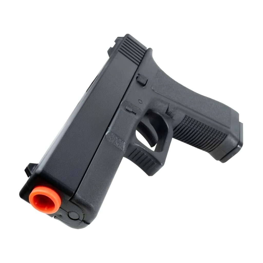 Inspirada no design clássico das pistolas Glock, essa versão é construída com corpo em polímero de alta resistência, proporcionando leveza, durabilidade e sensação realista no manuseio. O magazine em polímero comporta 11 BBs de 6mm e é otimizado para o uso de esferas de 0,12g para melhor alcance e desempenho.