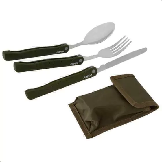 O conjunto de talheres Soldier CF005 da Echolife é ideal para camping. Possui colher, garfo e faca, fabricados em aço inoxidável para garantir a qualidade do produto e punho em plástico resistente na cor verde oliva. Conte com as três peças deste produto para pensar no seu bem-estar e praticidade. Acompanha bolsa para armazenamento e transporte.