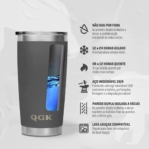 Copo Térmico Tumbler QGK 591ML Preto com Tampa