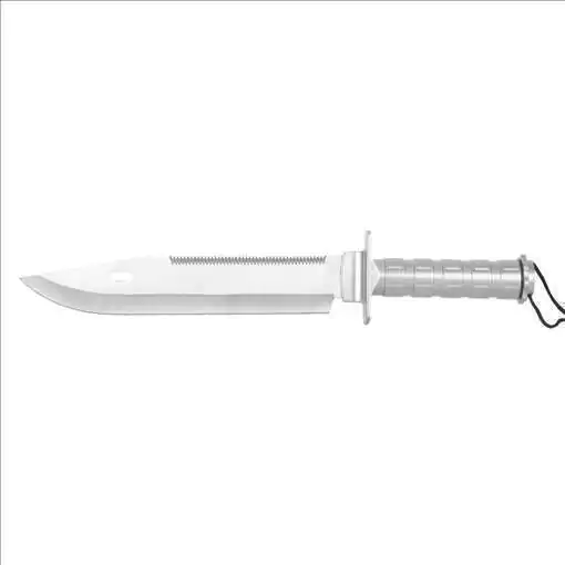 Ideal para circunstâncias de sobrevivência, resgate, caça e pesca, a faca Platoon tem na parte superior da lâmina um fio de serra, que ajuda em tarefas como corte de galhos. Seu cabo é de alumínio texturizado e com material antiderrapante, para um melhor manuseio e segurança na pegada.Quanto às suas funções, são diversas que a faca Platoon inclui: serra, anzol, mini-faca tática, kit de sobrevivência, bússola, espelho refletor, abridor de latas, abridor de garrafas, estilingue, borracha tipo tripa de mico, amolador, cordim, abridor de madeira, lâmina régua, entre outros.