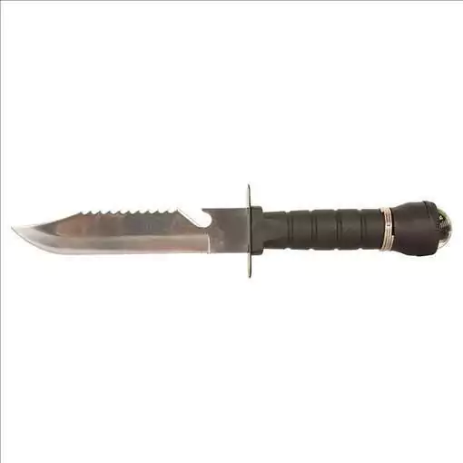 Esta incrivel faca pode ser usada de modo sobrevivencia pois tem uma parte serrilhada na parte superior de sua lamina.