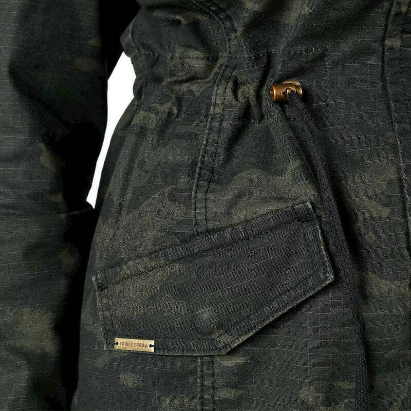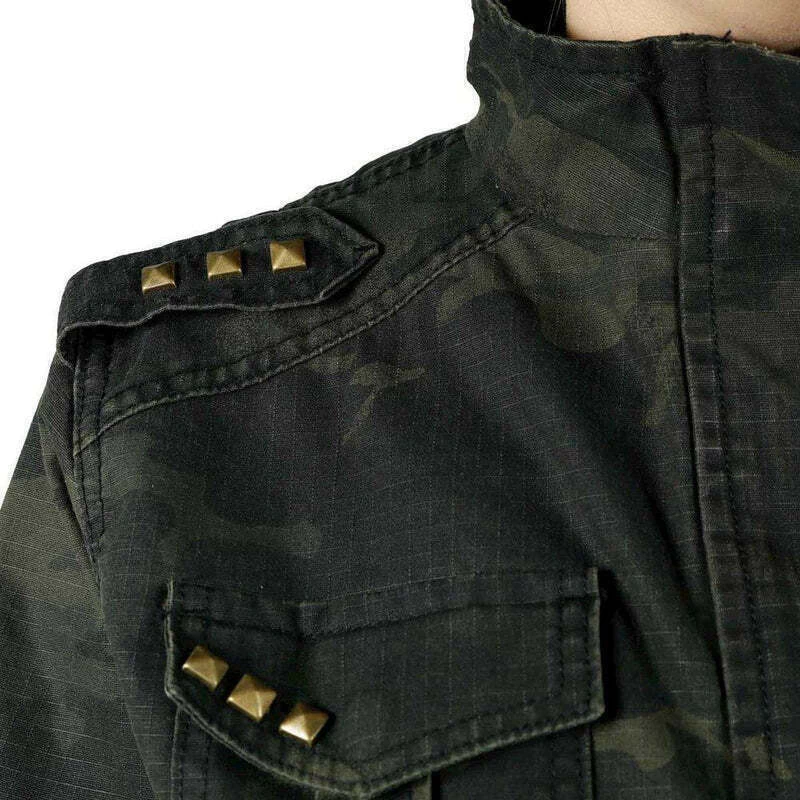 Ideal para uso urbano, tático ou outdoor, combina funcionalidade com detalhes que valorizam o visual, como ombros com spikes decorativos e acabamento robusto com botões de pressão estrategicamente posicionados.