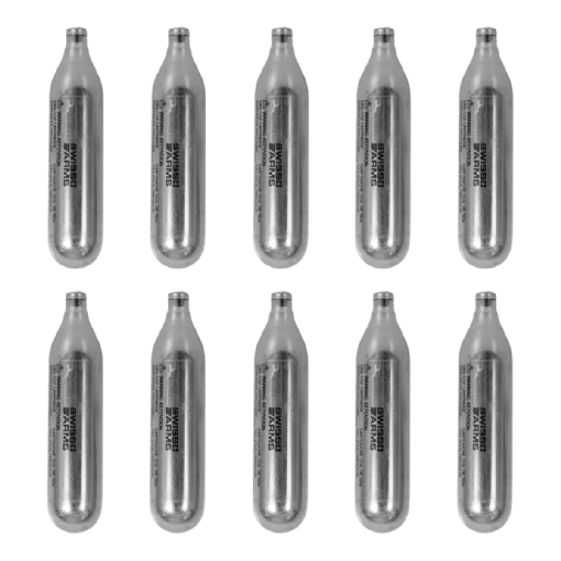Kit 10 Cilindros de CO2 descartável, para armas de pressão, Airsoft, Paintball e outros dispositivos que utilizem este modelo de ampola de CO2.