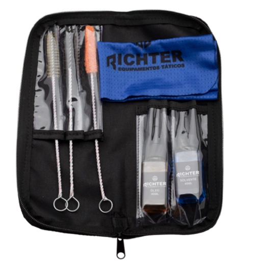 - Estojo em nylon com fecho em ziper para armazenagem e transporte seguro do kit de limpeza.