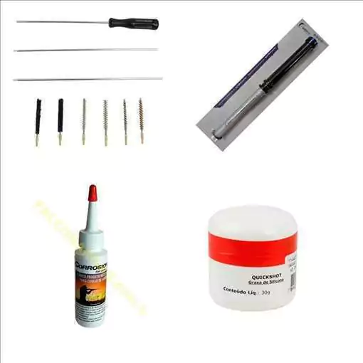 Kit Montado pela Falcon Armas, com Graxas para uso em carabinas de pressão juntamente com Corrosion Destinado a Prevenção de Ferrugem, Kit de Limpeza NTK para carabinas de pressão, juntamente com molas a gás (Gas Ram) da Quickshot.