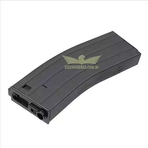 Magazine Hi-cap para 360 bbs, com opção de corda rápida, na qual se puxa um corda na parte inferior do mag, alimentando instantaneamente a flexão do carregador, dando maior agilidade no carregamento.