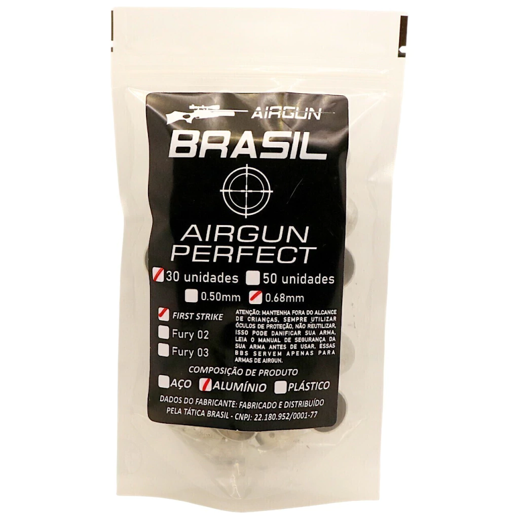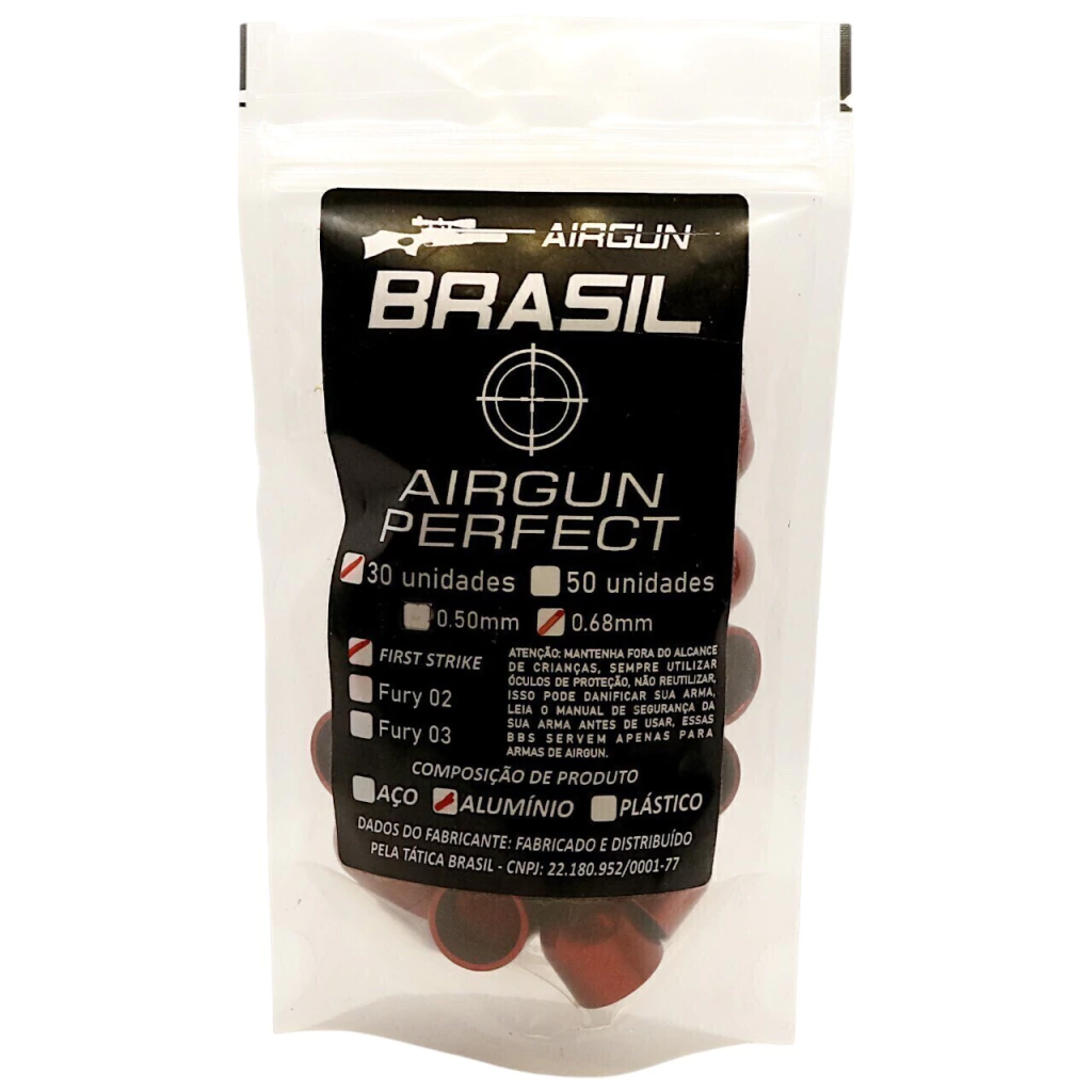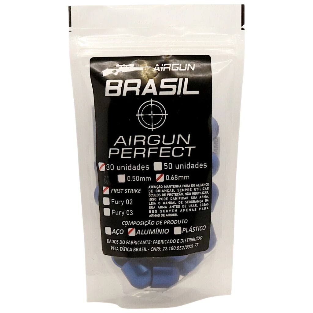 A Munição Slug First Strike Alumínio .68 foi desenvolvida para oferecer desempenho tático superior em partidas de paintball calibre .68 e treinos com revólveres HDR, Artemis e similares. Produzida em alumínio de alta densidade, proporciona maior durabilidade, excelente penetração e trajetória estável, sendo ideal para tiros de precisão e impacto em alvos rígidos.
