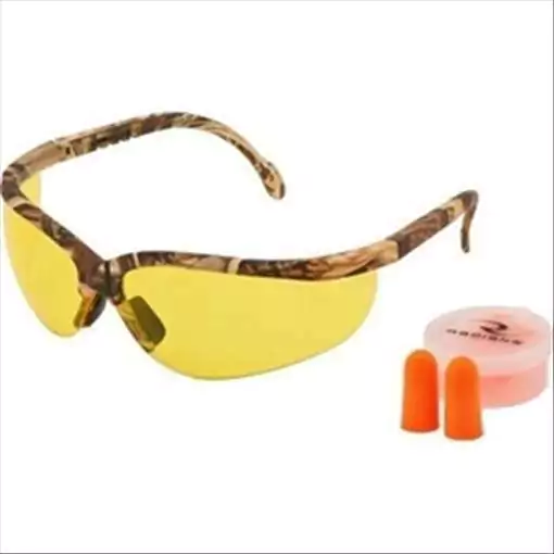Óculos Radians modelo de Proteção Radians Hunter's Kit Journey ™ com lentes de policarbonato amarelas, armação aberta de 4 posições de policarbonato , com protetor nazal em silicone. Atende as normas de segurança ANZI Z87.1 (resistente a impactos).