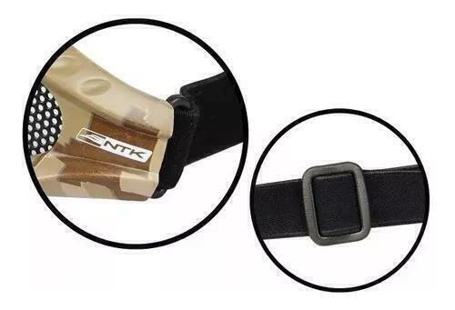A estrutura é leve e resistente, com bordas revestidas em polietileno flexível, oferecendo maior conforto durante o uso prolongado. A cinta elástica emborrachada permite um ajuste seguro e personalizado à cabeça, adaptando-se a diferentes jogadores com firmeza.