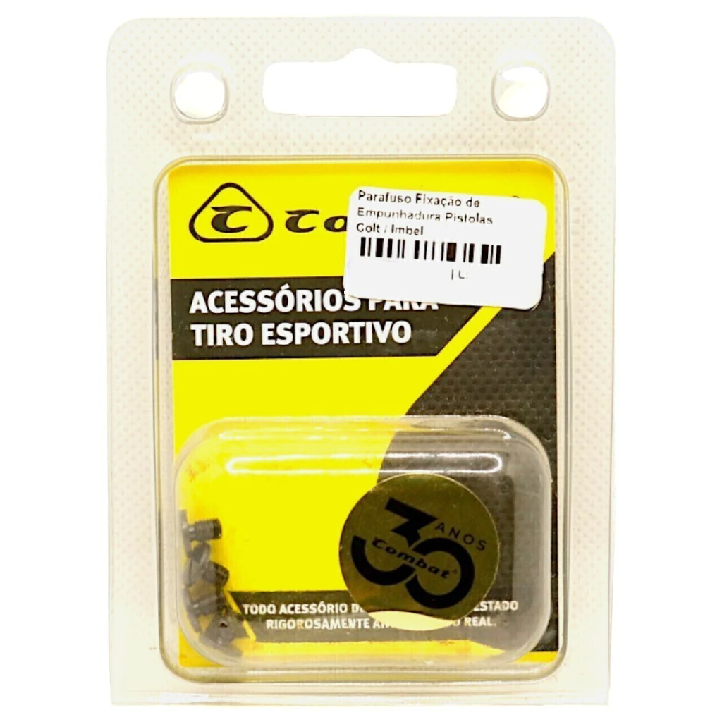 Conjunto com quatro parafusos desenvolvidos para a fixação da empunhadura Combat código 044 e 055 em pistolas Colt e Imbel.