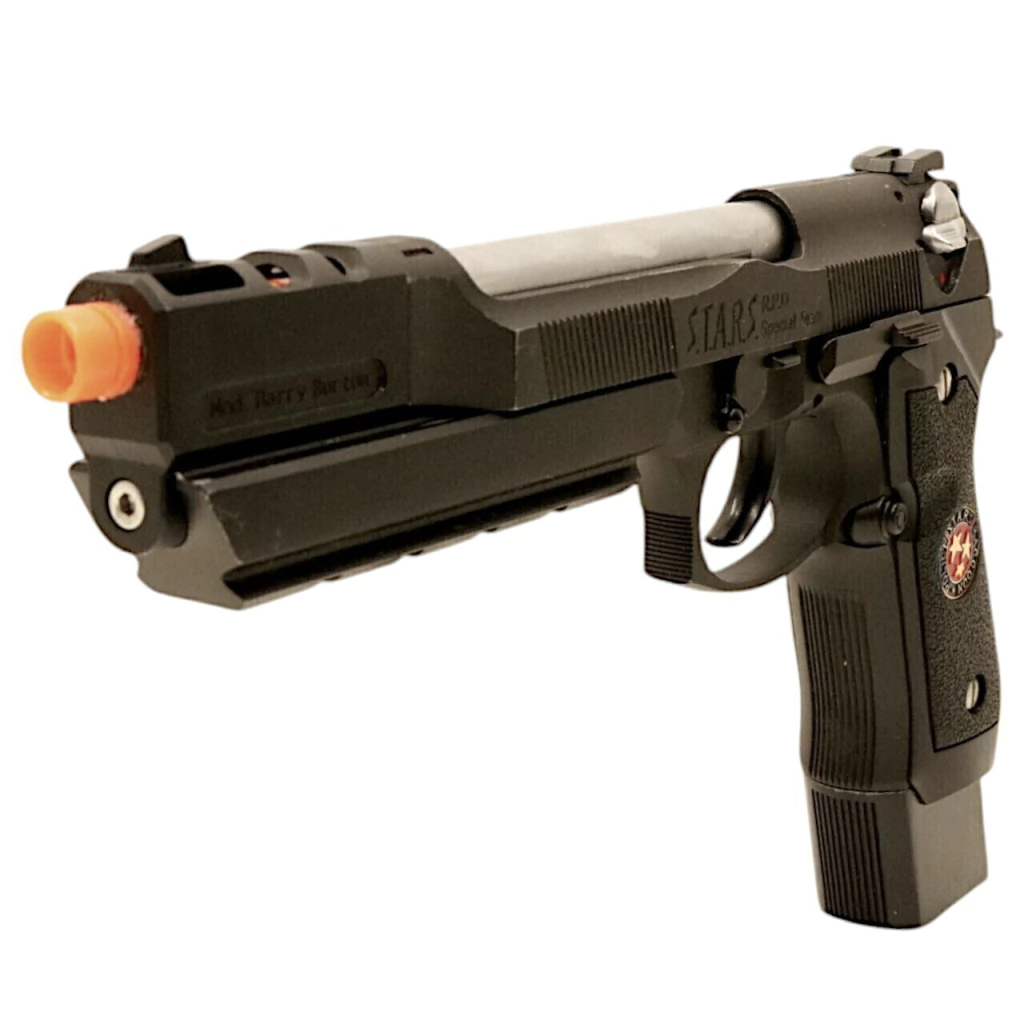 Esse Modelo é Feito Inteiramente em Metal (Full Metal), com Empunhadura em Madeira e Polímero com a Logo da Equipe STARS e com 2 Carregadores, sendo um Normal e um Estendido, mas possuindo a Mesma Capacidade de 25+1 BB's e Sendo feitos em Metal.