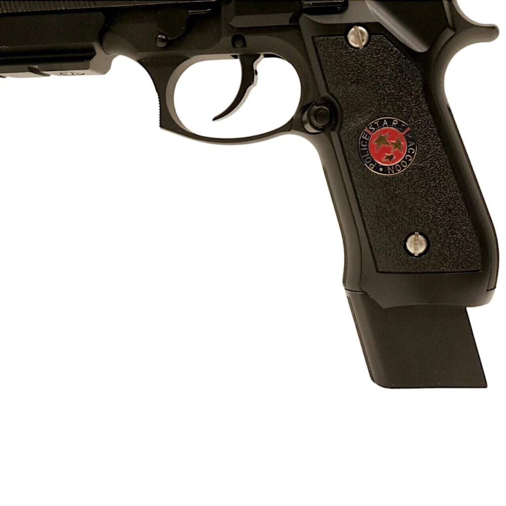 Este modelo de pistola é fabricado em escala 1:1 com as mesmas dimensões da Beretta de fogo, sendo possível se utilizar os mesmos Coldres e equipamentos disponíveis para a Beretta 92 de fogo.