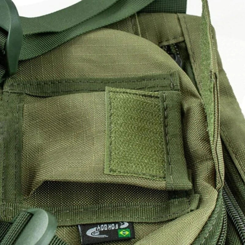 Confeccionada em tecido Rip-Stop 100% poliéster com resina hidrorepelente, oferece alta durabilidade e resistência a rasgos. Possui coltre universal interno, compatível com todos os tipos de pistolas, além de compartimento exclusivo com suporte para dois carregadores.