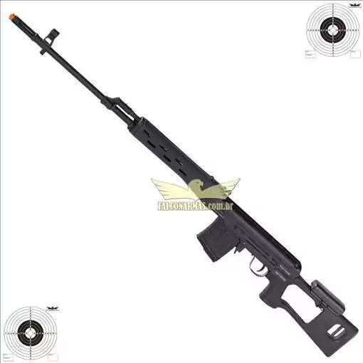 O AK Sniper também é conhecido como DRAGUNOV ou SVD, é um fuzil para atiradores de elite produzido na antiga União Soviética, semi-automático em calibre 7,62x54mm, tem um bom alcance (acima dos 600 metros e até os 1000 metros) e seu tamanho também é diferenciado, 1,22m de comprimento, cada esquadrão de infantaria russa tem um soldado com essa arma, existe uma versão com cano um pouco mais curta e coronha rebatível para tropas paraquedistas o SVD, apesar de se parecer com o AK, ele não é da mesma família, foi desenvolvido pelo engenheiro Yevgeny Dragunov em 1959, existem versões dessa arma fabricadas em outros países e utilizados até hoje, acessórios mais modernos podem ser acoplados com a ajuda de trilhos e suportes especiais para ele. (OBS.: a versão de airsoft tem o modo automático de disparo).