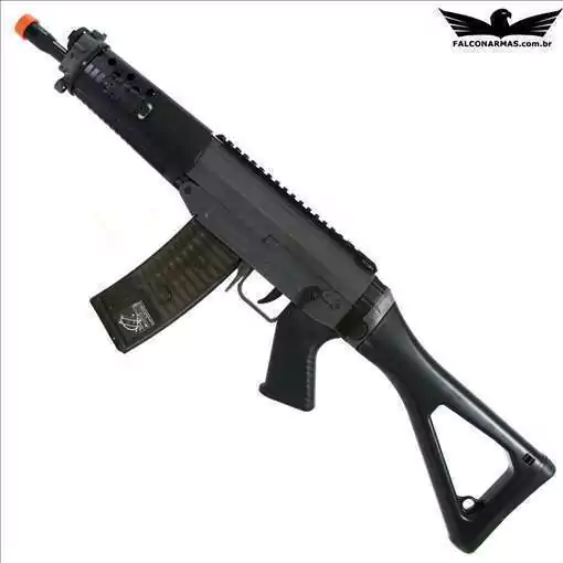 Este rifle apresenta uma constituição em plástico ABS, e é indicado para iniciantes de airsoft. Possui coronha rebatível, zarelho para bandoleira, massa de mira rebatível, magazine mid cap para 60 esferas e trilhos laterais e superior de 20mm. A sensação ao empunhar o rifle é leve e confortável. Contém marcações Sig 552 Commando licenciadas que incrementam o visual do rifle. Possui modo de tiro Spring, no qual se engatilha o rifle a cada disparo. Acompanha vareta BB loader