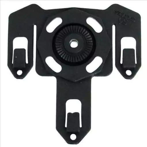 Suporte de polímero com fixação em acessorios (mochilas, case, coletes, bolsos, etc) com sistema M.O.L.L.E (modular). Compatível com todos os coldres da marca Só coldres. Confeccionado em polímero, injetado em peça única, com regulagem de ângulo através de pré-encaixe dentado junto a peça, com fixação final através de um parafuso metálico tipo Allen.
